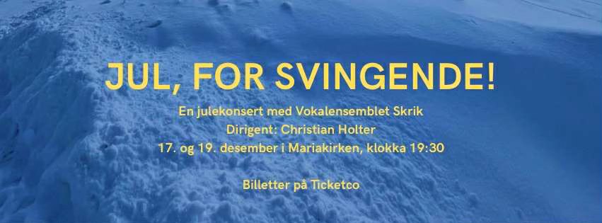 To kvelder i desember - 17. og 19.desember inviterer Vokalensemblet Skrik til julekonserter i Mariakirken.